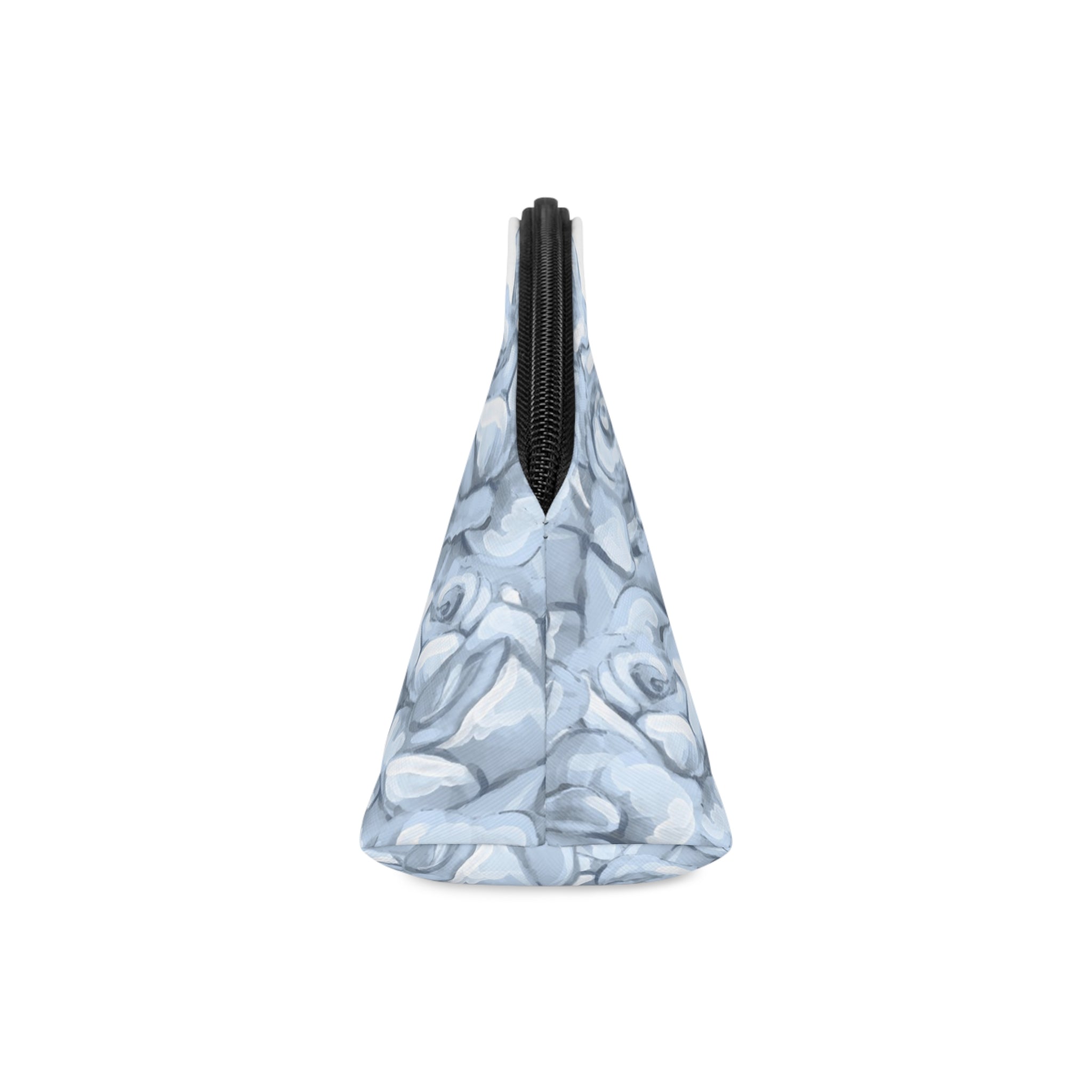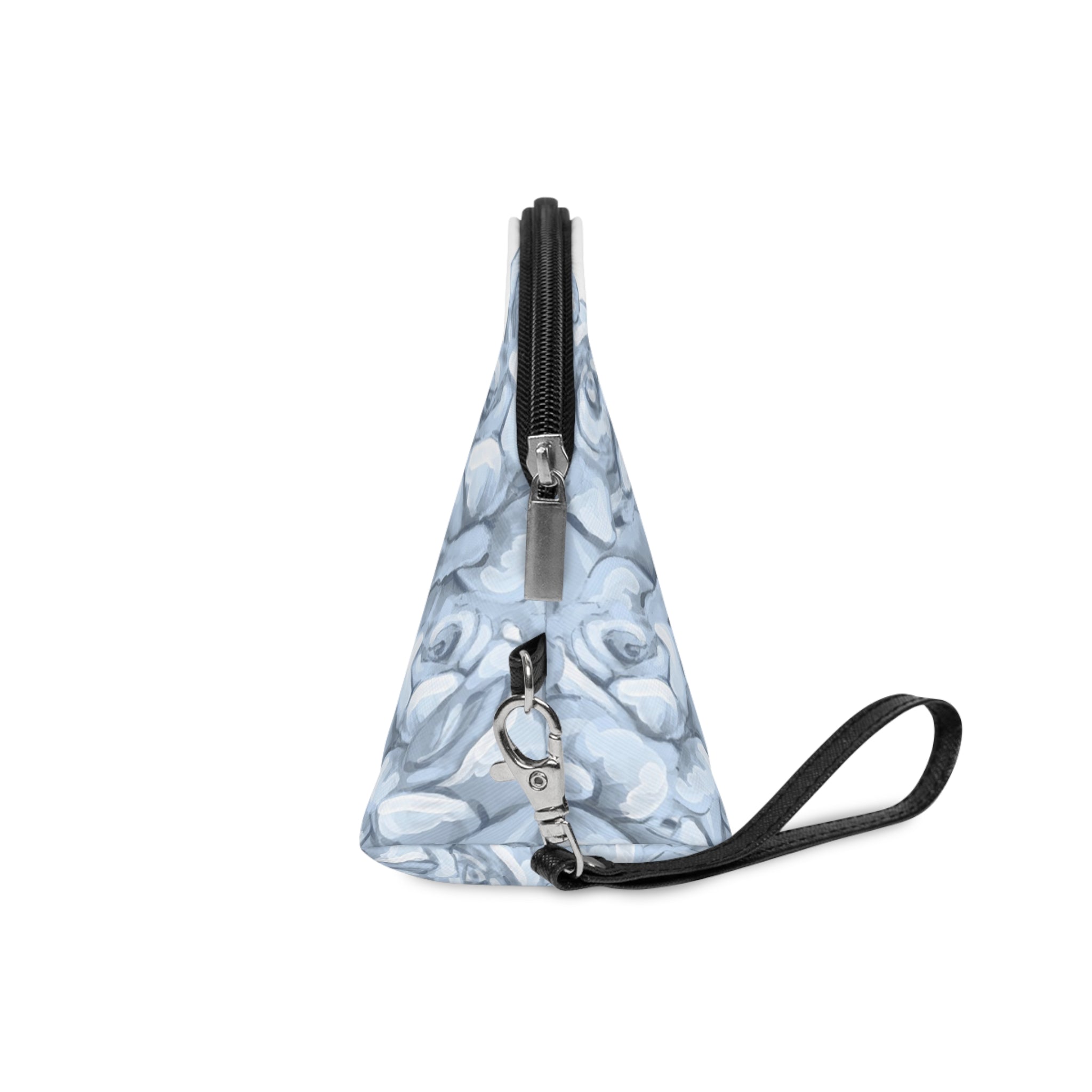 There's more to makeup bags than meets the eye. Their main purpose is to store cosmetics, but they're often used to carry travel essentials, like cables, headphones, medicine, hygiene products. Some even use them as art supply cases. These curve-top bags will be the top multi-purpose item in any home with your unique design. They have a zipper for safety and a removable leather strap for comfort.