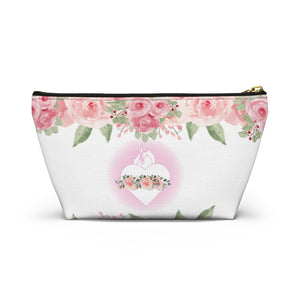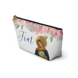 The perfect little bag to put your delicate Chapel Veil in, along with your rosary and prayer cards. Fits in your purse or glove box. The larger bag has plenty of room for not only your veil and rosary but extra room for your church missal or prayer books. Both are perfect to take into your Adoration Chapel allowing you to take in only what you need. This image is exclusive to Sacred Image Icons. AMDG!