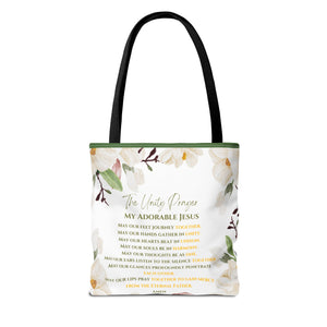 Wear your faith with this practical, high-quality Tote Bag. All-over print provides comfort with style at church, shopping, or on retreat. If you are looking for a particular saint let me know I may be able to design one for you or your group. Made from reliable materials, lasting for seasons. This image is exclusive to Sacred Image Icons. AMDG!