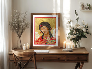 Guardian Angel Ready to frame print - It is a belief dating back to the time of the Church Fathers that each soul is entrusted by God to the special care of a Guardian Angel. St. Jerome wrote, "How great the dignity of the soul, since each one has from his birth an angel commissioned to guard it." (Comm. in Matt., xviii, lib. II) Although the guardian angels are not specifically mentioned in the Bible, there are several passages which seem to hint at them, as in Psalms 91: 11-12, "For he commands his angels with regard to you, to guard you wherever you go. With their hands they shall support you, lest you strike your foot against a stone."