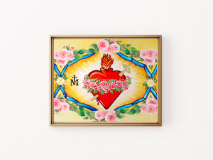 The Flame. There usually is a flame at the top of the heart with one or more tongues of fire. It symbolizes zeal and devotion, and it further underscores Mary’s fervor, loyalty, and affection for her Son. The radiating heat is a reminder of the intensity of Mary’s warm love.
