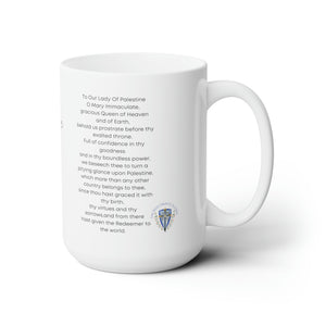 To Our Lady Of Palestine, O Mary Immaculate,gracious Queen of Heaven and of Earth, behold us prostrate before thy exalted throne. Full of confidence in thy goodness and in thy boundless power, we beseech thee to turn a pitying glance upon Palestine, which more than any other country belongs to thee, since thou hast graced it with thy birth, thy virtues and thy sorrows,and from there hast given the Redeemer to the world.