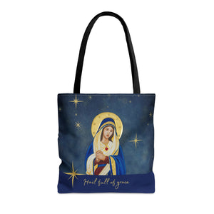 Wear your faith with this practical, high-quality Tote Bag. All over print provides comfort with style at church, shopping or on retreat. If you are looking for a particular saint let me know I may be able to design one for you or your group. Made from reliable materials, lasting for seasons. This image is exclusive to Sacred Image Icons. AMDG!
