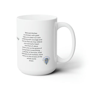 Beloved Mother, so stricken with greif, help us to bear our own suffering with courage and love so that we may relieve your sorrowful heart and that of Jesus. Grant unto us the grace of loving God in everything. O Mother of Sorrows, most affected of al mothers, have mercy on the sinners of the whole world. Amen