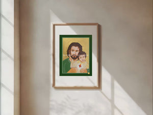 Saint Joseph and the Sacred Heart of Jesus ready to frame print.