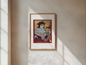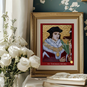 This Saint Thomas More Icon Print celebrates the admirable lawyer, statesman, royal advisor and martyr. Born in the late 1400s, More served as a close advisor to King Henry VIII and was appointed Lord Chancellor of England in 1529.