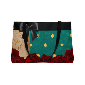 Featuring subtle artistic flourishes inspired by Our Lady of Guadalupe, this lightweight, large tote bag is the perfect accessory for the mid-range outing and casual trip.