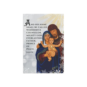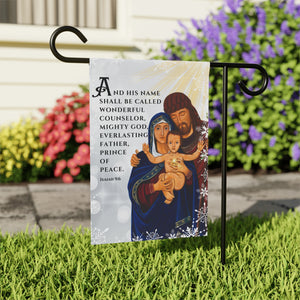"And His Name Shall Be Called" A beautiful reminder of the true meaning of Christmas. Help anyone transform their homestead or garden with a simple addition - the personalized banner. Made with lightweight yet highly durable poly poplin-canvas fabric, these banners feel premium to the touch and will oversee your home for years on end. This image is exclusive to Sacred Image Icons. AMDG