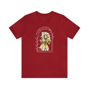 Celebrating St. Joan of Arc's famous quote "I was born for this," This classic unisex jersey short sleeve tee fits like a well-loved favorite. Soft cotton and quality print make users fall in love with it over and over again. These t-shirts have-ribbed knit collars to bolster shaping. The shoulders are tapered for a better fit over time. Dual side seams hold the garment's shape for longer.