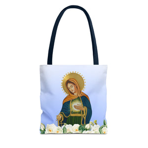 Flame of Love Tote - These custom-printed tote bags come with multiple handle colors to match your designs. Made with spun polyester, these bags feature double-stitched seams, cotton webbing straps, and nonwoven laminate lining for high-end durability. Your all-over print is created with dye sublimation for high-end visuals.
