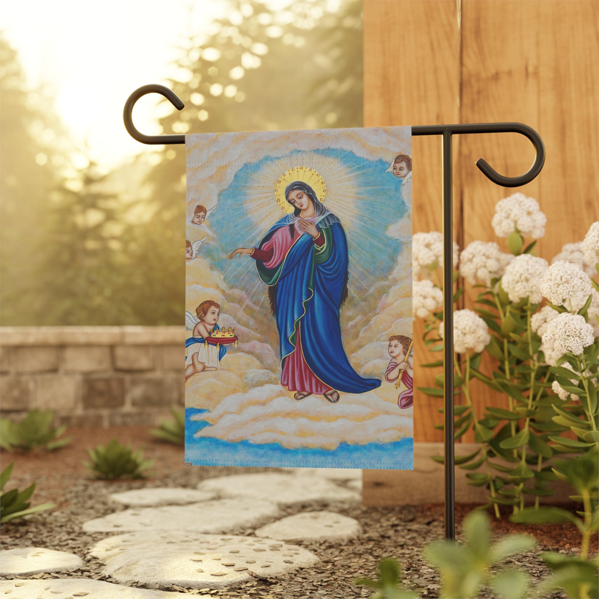 Enhance your outdoor space with this stunning Garden Banner, perfect for adding a vibrant touch to your garden or home. The beautifully designed fabric features a serene and captivating scene that brings a sense of peace and joy to your surroundings. Ideal for garden enthusiasts, spiritual seekers, or anyone looking to celebrate nature's beauty. This banner is perfect for seasonal decorations, garden parties, holidays, or simply as a daily reminder of tranquility. It captures the essence of celebrations like spring festivals, Mother’s Day, or any occasion that honors nature and spirituality.