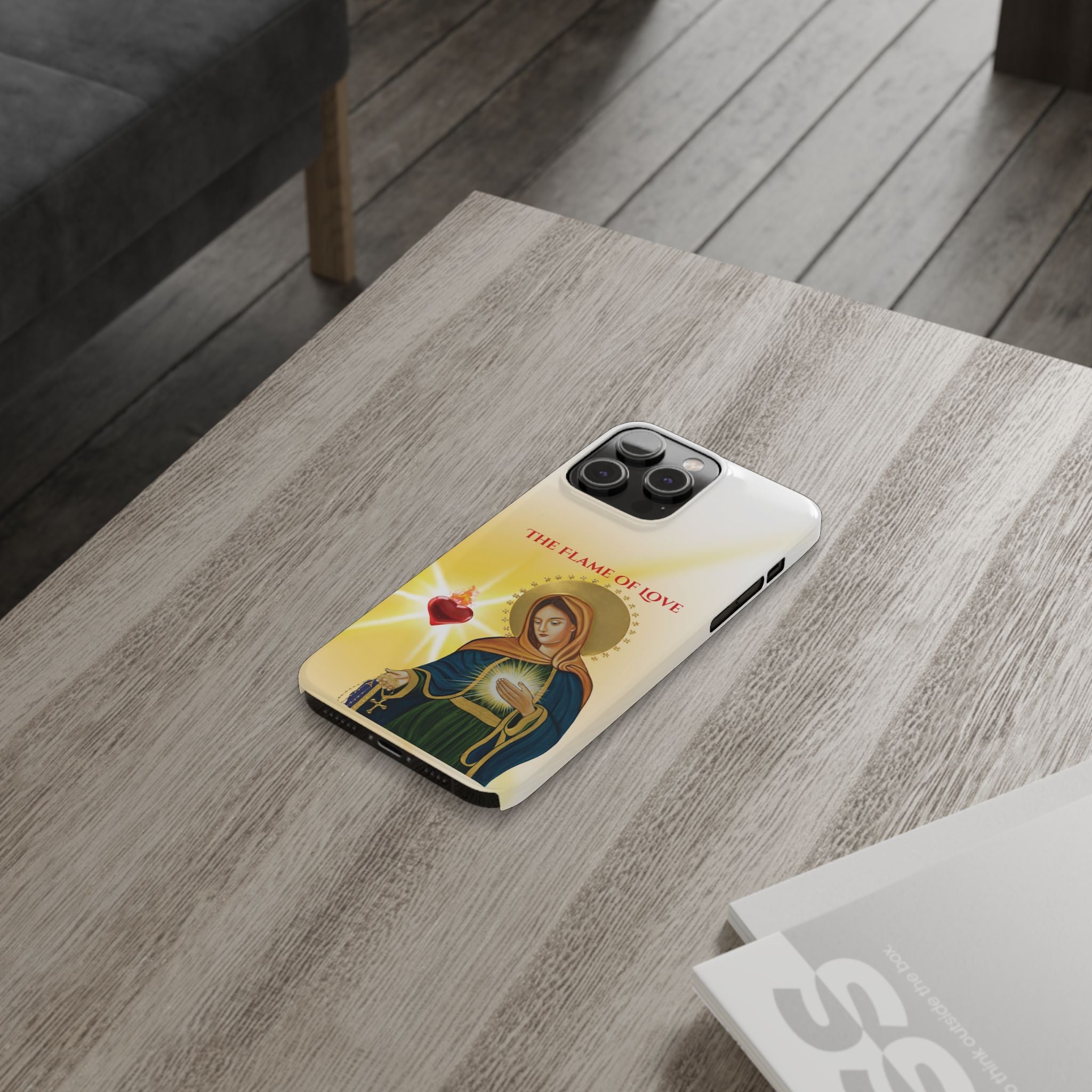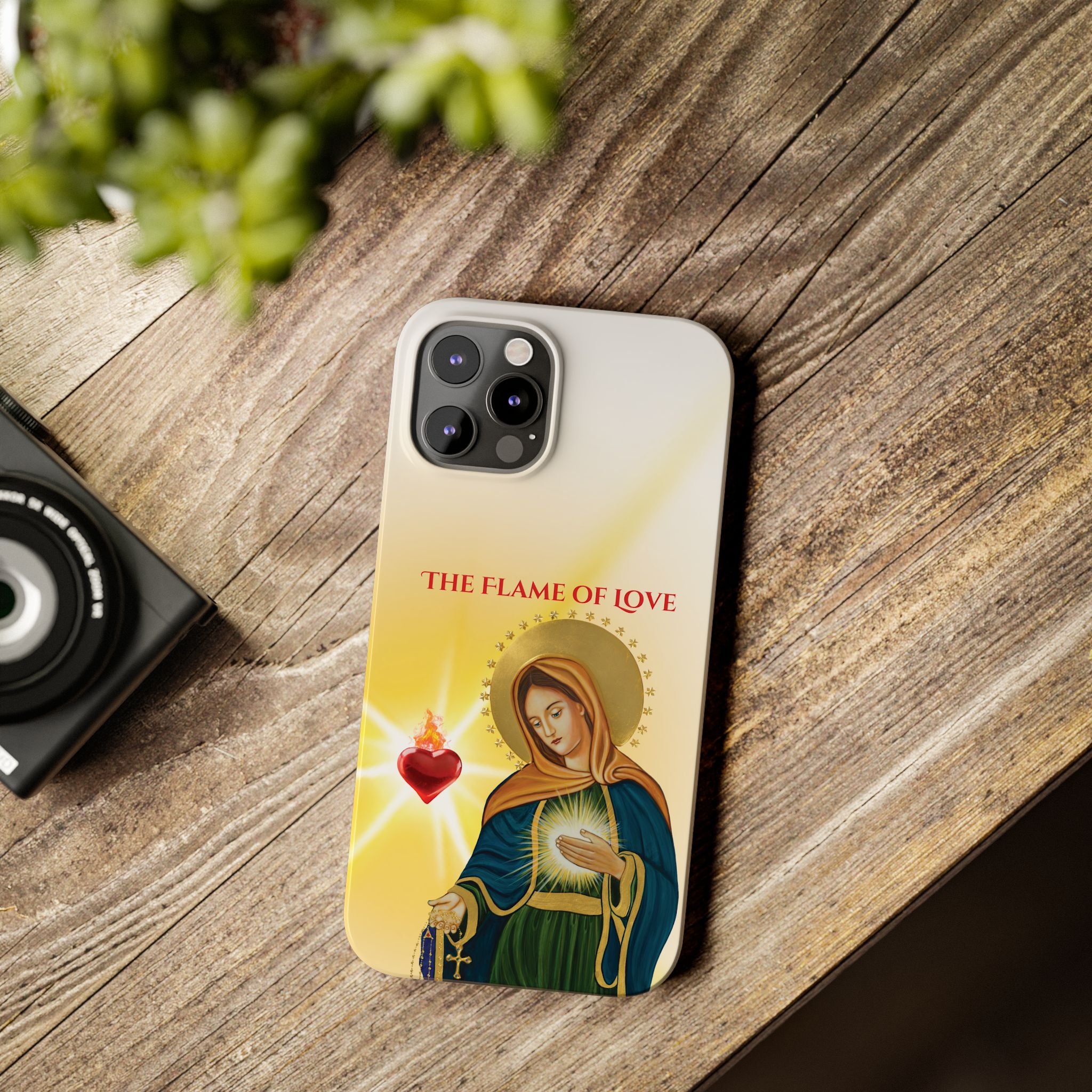Flame of Love Slim Phone Case, Religious Phone Cover, Stylish Saint Artwork, Gift for Her, Personalized Tech Accessory