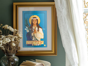 When I paint icons, I put myself in a very prayerful state and I shut out the secular world. I often listens to the stories of the saints in which I am currently working for a full understanding of their impact on the world. My friends and family are aware of the setting I put myself in and they often reach out to me with prayer requests. As I continued my journey with St. Philomena, I received a call from a friend whose elderly aunt was experiencing a restless death. As I painted, I prayed for the aunt to be granted a peaceful death through the intercession of St. Philomena. A few days later I followed up with my friend to see how her aunt was doing. My friend chuckled and said that her aunt was truly losing it; she was telling everyone there was a little girl in a blue dress in her room ready to take her home. Philomena had answered my prayer.
