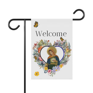 Help anyone transform their homestead or garden with a simple addition - the garden flag of Our Blessed Mother, Perfect for every Catholic home. Made with lightweight yet highly durable poly poplin-canvas fabric, these banners feel premium to the touch and will oversee your home for years on end. This image is exclusive to Sacred Image Icons. AMDG!