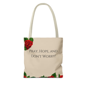 This inspiring tote bag features Padre Pio dressed in priestly vestments, his stigmata-marked hand raised—a powerful witness to the wounds of Christ and the transformative power of suffering offered in love. On the back, his most famous counsel rings out: "Pray, hope and don't worry!"
