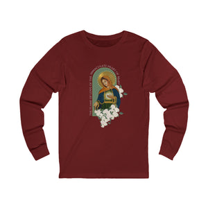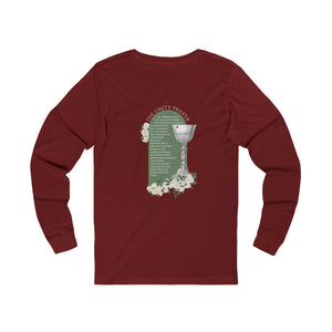 Embrace comfort and style with this Unisex Jersey Long Sleeve Tee, the perfect addition to your casual wardrobe. Its artistic design fosters a sense of peace and spirituality, making it an ideal choice for those who appreciate meaningful apparel. This tee fits effortlessly into both everyday wear and special occasions such as church gatherings, holidays like Easter or Christmas, and personal celebrations. Tailored for adults who value comfort and aesthetic, this long sleeve tee is a thoughtful gift for loved ones seeking stylish, faith-inspired clothing.