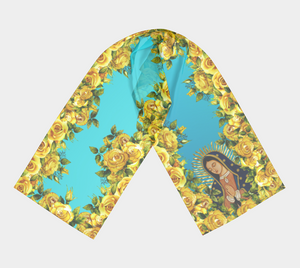 Our Lady of Guadalupe Yellow and Turquoise Scarf - Genuine Silk or Poly
