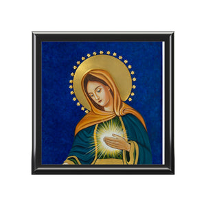 This Flame of Love Rosary box is a beautiful devotion in the Catholic Church. Perfect for storing your rosary, jewelry, or small trinkets. It exudes a sense of spirituality and elegance, fitting seamlessly into a buyer's prayer corner or dressing table. Ideal for Catholic devotees and those looking for a meaningful and stylish storage solution. Perfect for religious holidays, baptisms, confirmations, and weddings.
