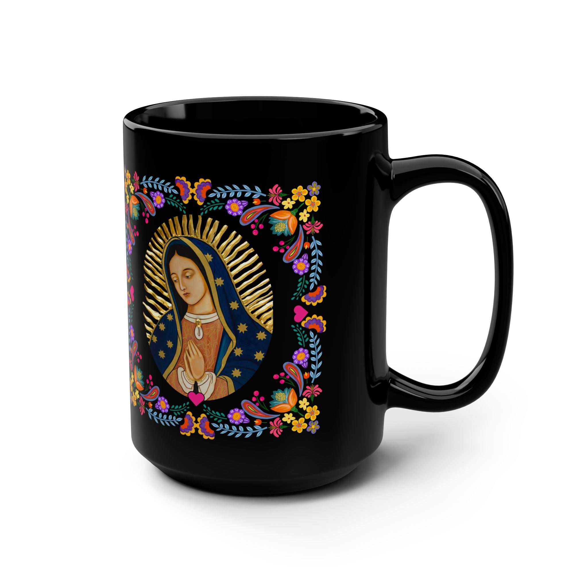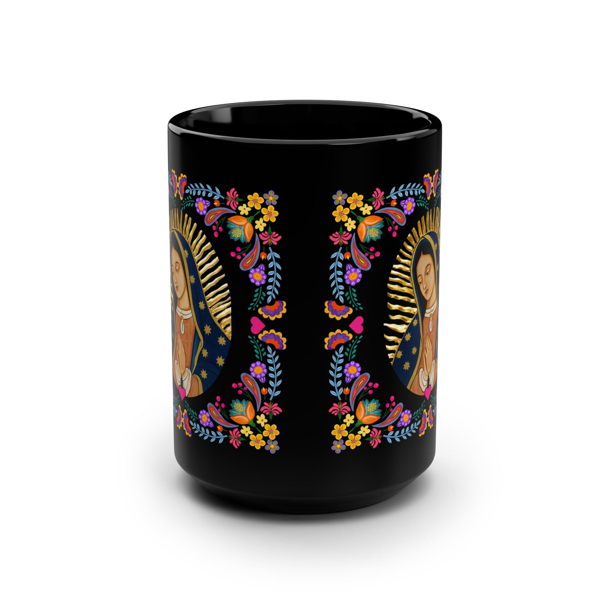 Introducing the perfect companion for your daily coffee or tea ritual: a stunning black mug crafted from glossy ceramic. This 15oz masterpiece exudes elegance and warmth, making every sip an enjoyable experience. The vibrant floral designs surrounding the serene figure create a captivating atmosphere, bringing a touch of art into your home or office. Ideal for coffee lovers and tea aficionados alike, this mug is perfect for cozy mornings, afternoon breaks, or even as a thoughtful gift. Celebrate special occasions like birthdays or holidays with this unique piece that adds flair to any gathering. Whether you're enjoying a quiet moment or sharing laughs with friends, this mug elevates any experience.