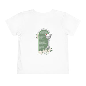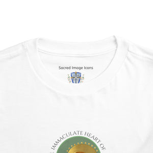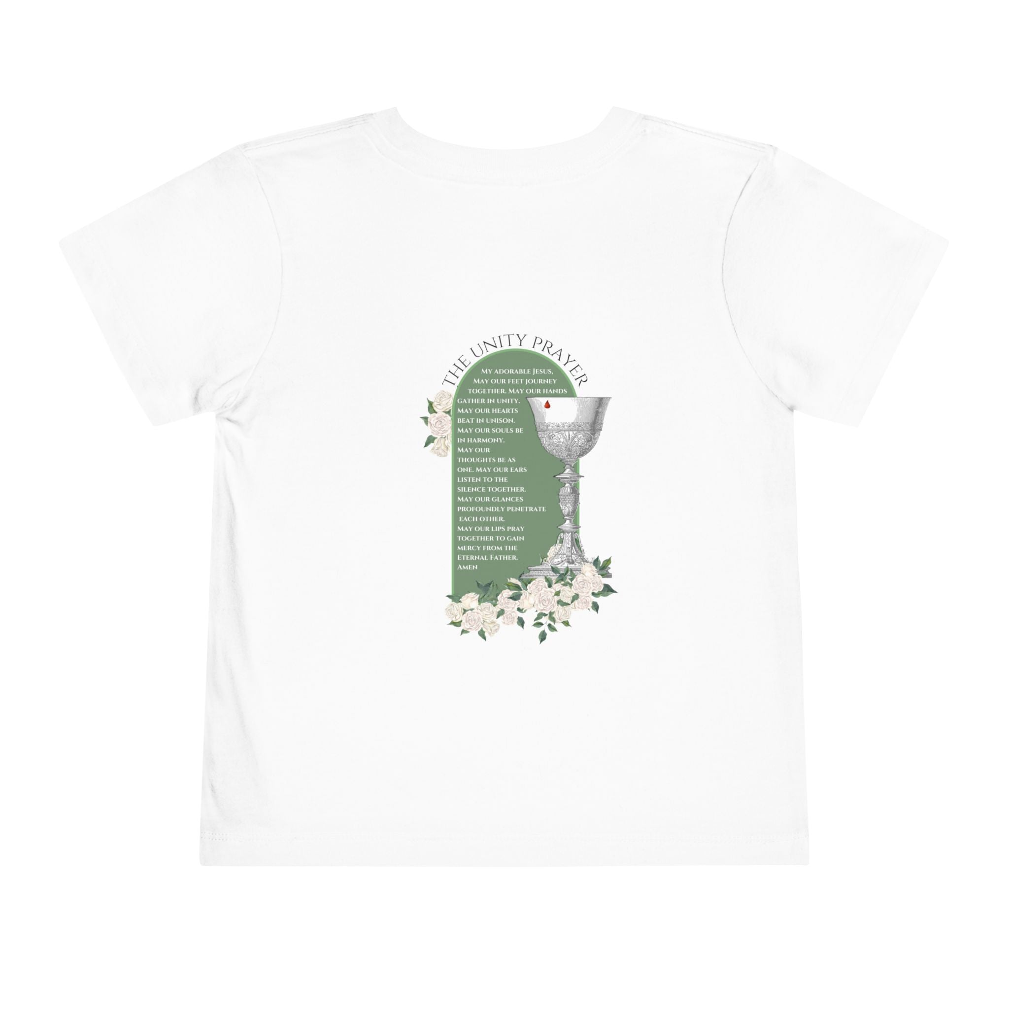 A cute and devotional toddler tee featuring the Flame of Love Catholic devotion a movement in the Catholic church. Perfect for little ones to wear during Sunday mass or religious events.