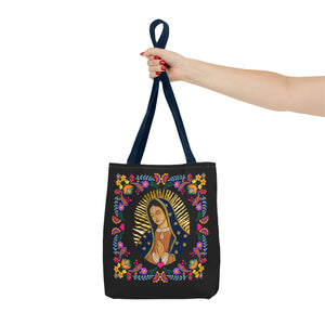 Vibrant Our Lady of Guadalupe Tote Bag for Faith and Inspiration, Prayer Bag, Religious Gift, Boho Floral Design, Eco-Friendly Shopping